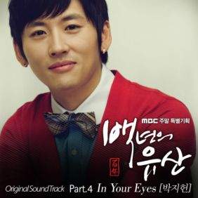 3일 공개된 박지헌의 "In Your Eyes"는 '백년의 유산'의 유진과 이정진의 러브 테마곡인 장희영 "In Your Eyes"의 또 다른 남자 버전으로 극중 세윤(이정진 분), 채원(유진 분)의 서로에 대한 사랑을 잘 표현해 내고 있다. 박지헌이 부른 "In Your Eyes"는 이승철 '그사람', '잊었니', 울랄랄세션의 '굿바이데이' , 이문세의 '사랑은 늘 도망가' 외 국내최고 가수들의 음반에 참여하며 활발한 활동을 해온 홍진영 작곡가의 곡. 시청률 1위를 지키며 주말 안방극장을 뜨겁게 달구고 있는 '백년의 유산'은 서울 변두리의 오래된 국수공장을 운영하는 일가를 그린 따뜻한 홈 드라마로 유진 이정진을 비롯하여 박원숙 정보석 전인화 등이 출연 중이다. MBC '백년의 유산'은 매주 토,일요일 저녁 9시 50분에 방송된다.