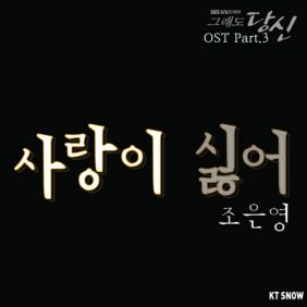 SBS TV 일일드라마 '그래도 당신 '(박언희 이현정 극본, 박경렬 연출)의 세 번째 OST 음원 엔딩곡 "사랑이 싫어"를 발표한다. 배우 송재희, 가수 이은미에 이어 꾸준히 음악활동을 이어온 실력파 여가수 조은영이 직접 엔딩 OST를 불러 뜨거운 관심이 쏟아지고 있다. 엔딩곡 "사랑이 싫어"는 한 남자의 사랑을 철석같이 믿고 살았던 한 여자, 그녀가 상상조차 하지 못했던 한 남자의 배신을 통한 슬픔과 분노로 인해 더 이상 사랑이 싫다는 드라마 내용을 반영한 곡이다. KT Snow 설기태 음악감독은 '엔딩곡과 조은영의 음색이 잘 어우러지고 드라마의 색깔과 잘 맞는 노래가 나와 좋다'며 만족감을 드러냈다.